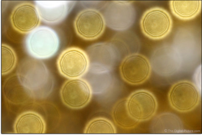 Cet organe central du système optique a un rôle non négligeable quant il s’agit d’évaluer le bokeh d’un objectif. Bien entendu, sa fermeture provoque la disparition progressive des défauts énumérés ci-avant, mais peut provoquer l’apparition d’autres défauts, comme l’aspect polygonal des flous, étant donné que les flous reflètent la forme du puits de lumière qui lui-même reflète la forme du diaphragme si celui-ci est fermé même juste un peu. Veuillez noter cependant que certains objectifs à conception particulière (certains objectifs macro, le Nikkor AF-S 24-70mm f/2.8G, etc…) peuvent présenter un diaphragme déjà fermé alors qu’ils sont pourtant à pleine ouverture dans un contexte bien précis. La forme des lamelles composant le diaphragme importe donc dès la pleine ouverture.