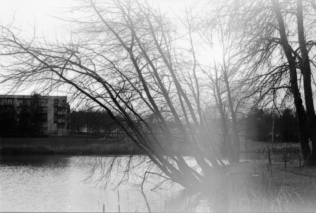 La zone blanchâtre verticale vient très certainement de l’émulsion elle-même. Il ne s’agit pas d’un flare ou d’un halo dus au soleil. Lognes – Janvier 2014 – Nikon F100 – Nikkor 50mm f/1.2 :